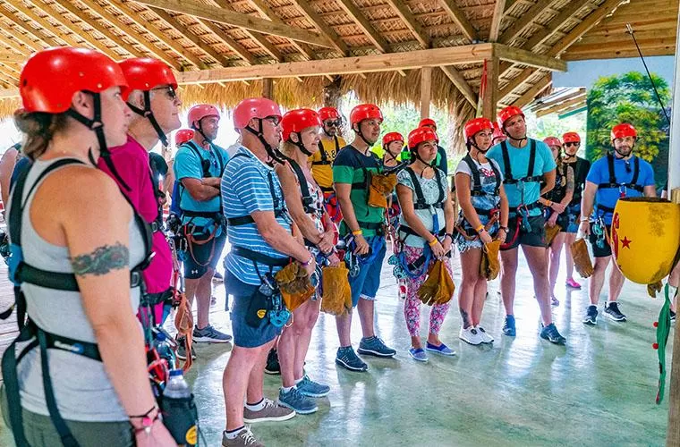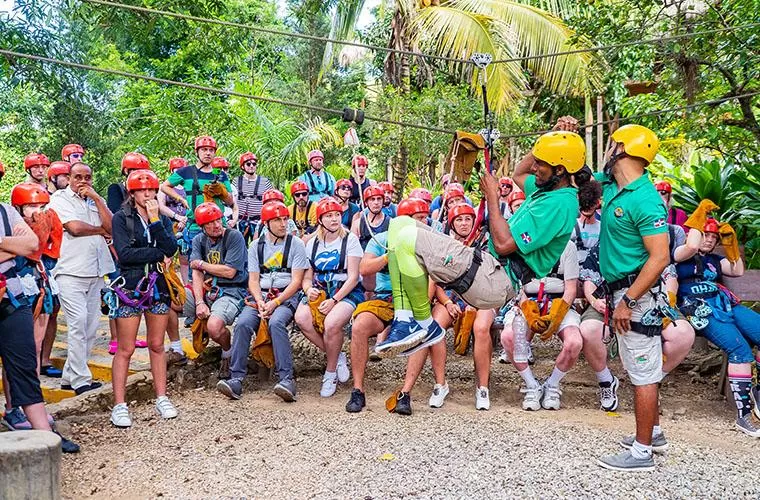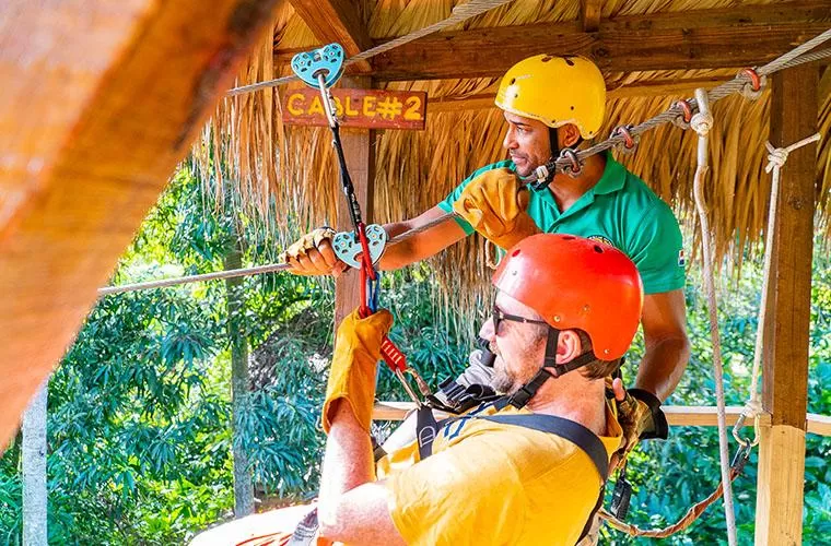 Our mountain course also has 18 platforms and is home to the two longest lines in the Dominican Republic and in the Caribbean. You’re safely attached with climbing gear to the double line cables with the longest one being 800 meters long! What to Expect Star at the Welcome Center where our expert canopy guides teach you all you need to know about the ride and the equipment, and covers a safety review. Then, it’s time for the zip lining fun to begin as you reach the first platform and then zip your way over the beautiful jungle landscape. Why Choose this Adventures? The longest zip lines in the Dominican Republic and the only one in the country with a side-by-side cable. Certified yearly by ACCT. Highlights • Visit one of the longest zip lines in the Caribbean, and the lengthiest in the Dominican Republic, spanning a distance of 800 meters as you glide through the air. • Landscapes come undone on your quest to find the hidden treasure resting inside Anamuya Mountain. • Stunning 18 platforms and 12 zip lines, spread across a lush tropical mountain range. Experience an unrivalled frenzy gliding skin deep across lavish jungle vegetation. Tour Duration: • 4 hours Includes: • All equipment and training • Experienced guides • Hotel pickup and drop-off • Use of helmets • Water Restrictions: • Must sign Liability Waiver. • Must attend a briefing. • Covered shoes required. • The minimum age to participate in this tour is 6years old. • For security reasons, children under 12 years of age will be able to do the ziplines circuit up to cable number 8 • The minimum weight to participate in this tour is 20 kilograms (44lbs.) • The maximum weight to participate in this tour is 127 kilograms (280lbs.) • The maximum weight to participate in this tour is 112 centimeters (44in.) • Children from 6 to 12 years old only go as far as zip line #8